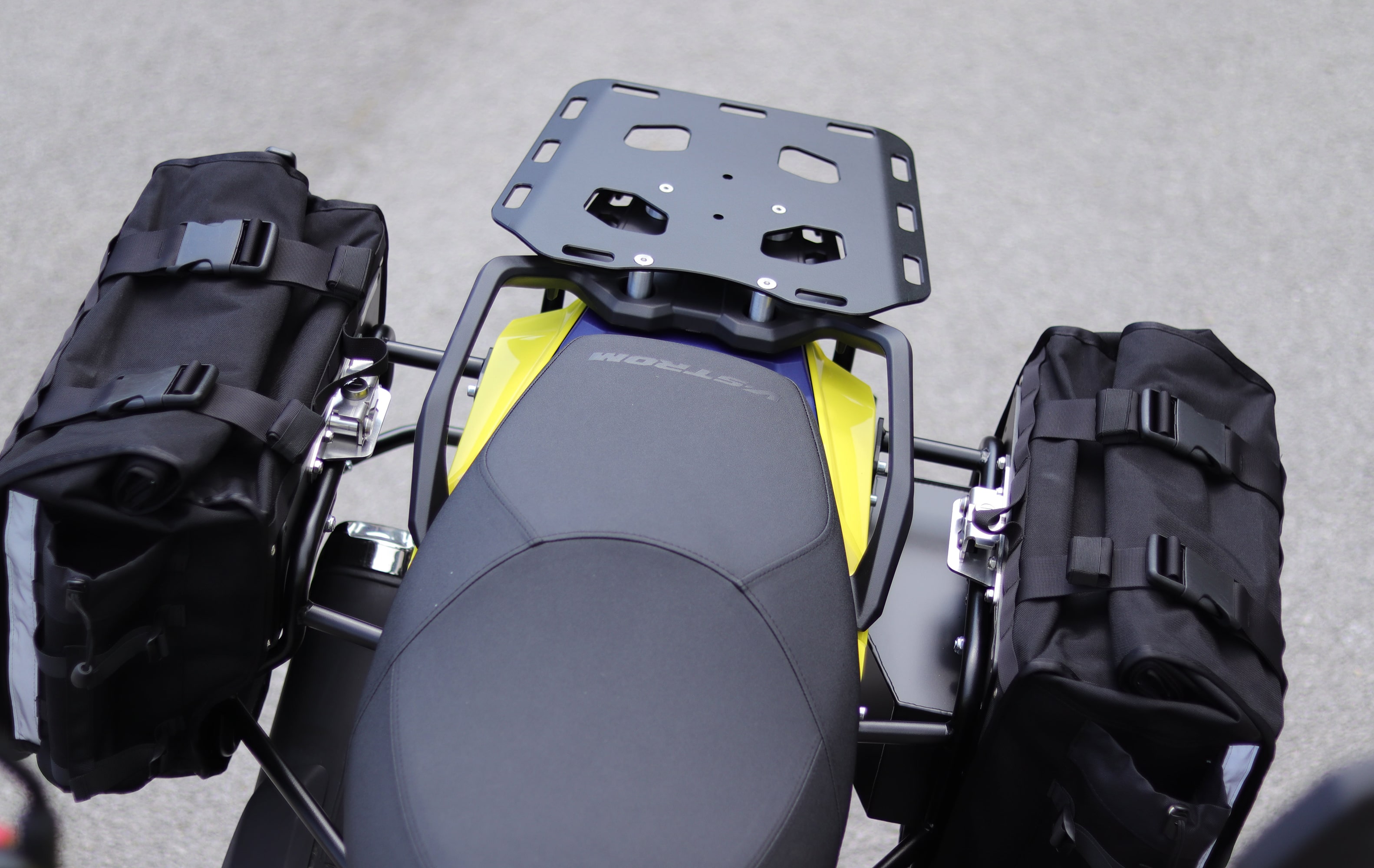 Please note - You will need to purchase Suzuki OEM parts 47511-06L10 and 47611-06L10 separately to complete your installation. These side covers will allow access to the mounting points for the pannier rack and provide for a cleaner look post-install. Your local Suzuki dealer can source these parts.