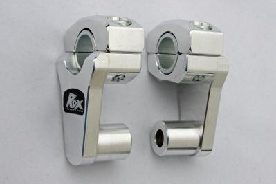 These Rox pivoting risers allow you to clamp a stock 7/8" diameter handlebar, or you can remove the 7/8" reducers and clamp an 1-1/8" aluminum "fatbar". If you are thinking of going to a fatbar after you bend your stock set, this is the riser to go with. Always check and confirm that your bike has adequate cable and brakeline length before installing any handlebar risers.