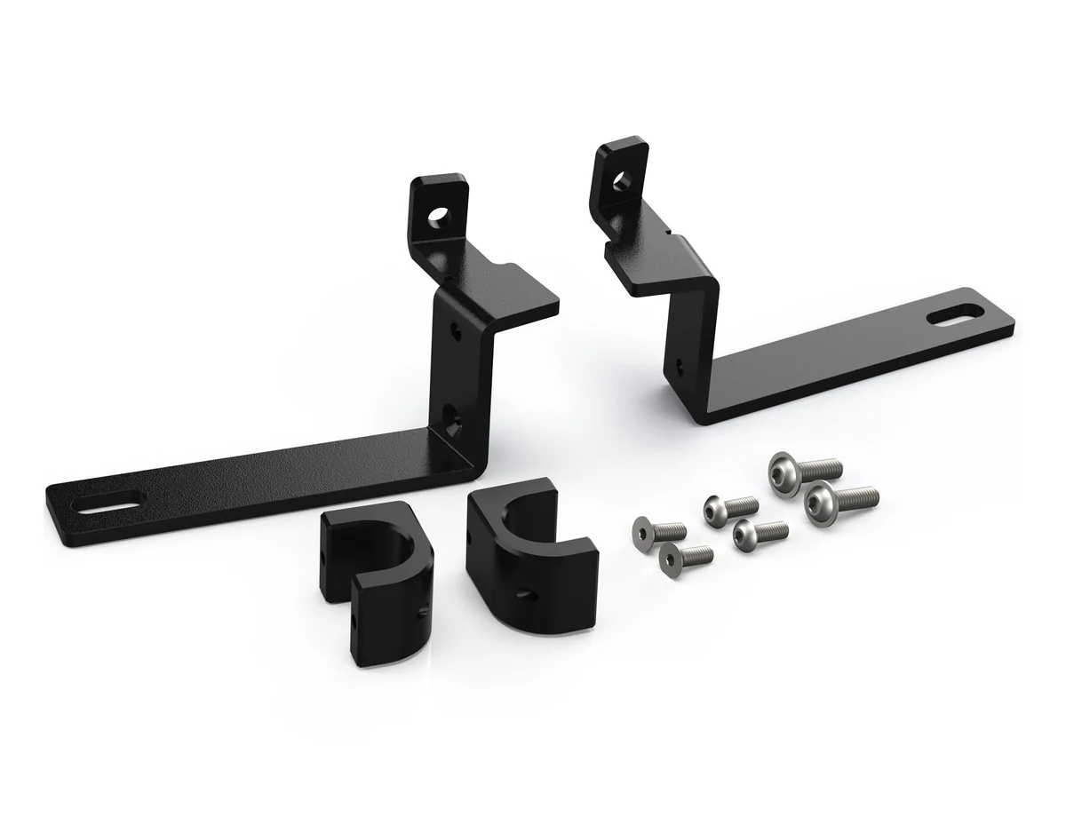 This custom-designed driving light mount allows you to position any DENALI driving light in the optimal spot on your Pan America, just below and to the outside of the headlight. It features a robust steel bracket and a precision-machined clamp that securely attaches to the Pan America fairing support bar. The mount includes an M8 mounting hole for the light pods and comes with all the necessary hardware for easy installation.