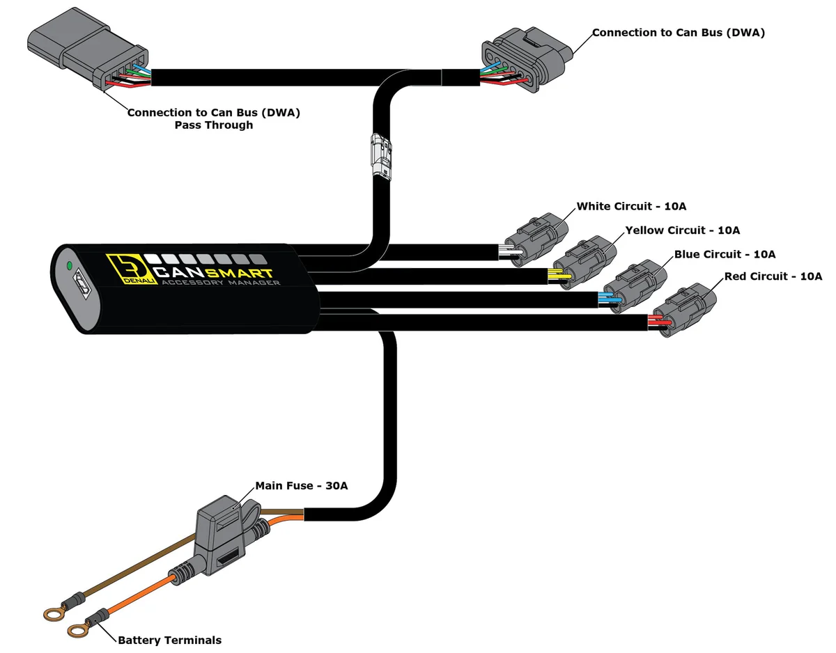 - Assign any accessory function to any of the four circuits via the CANsmart software.