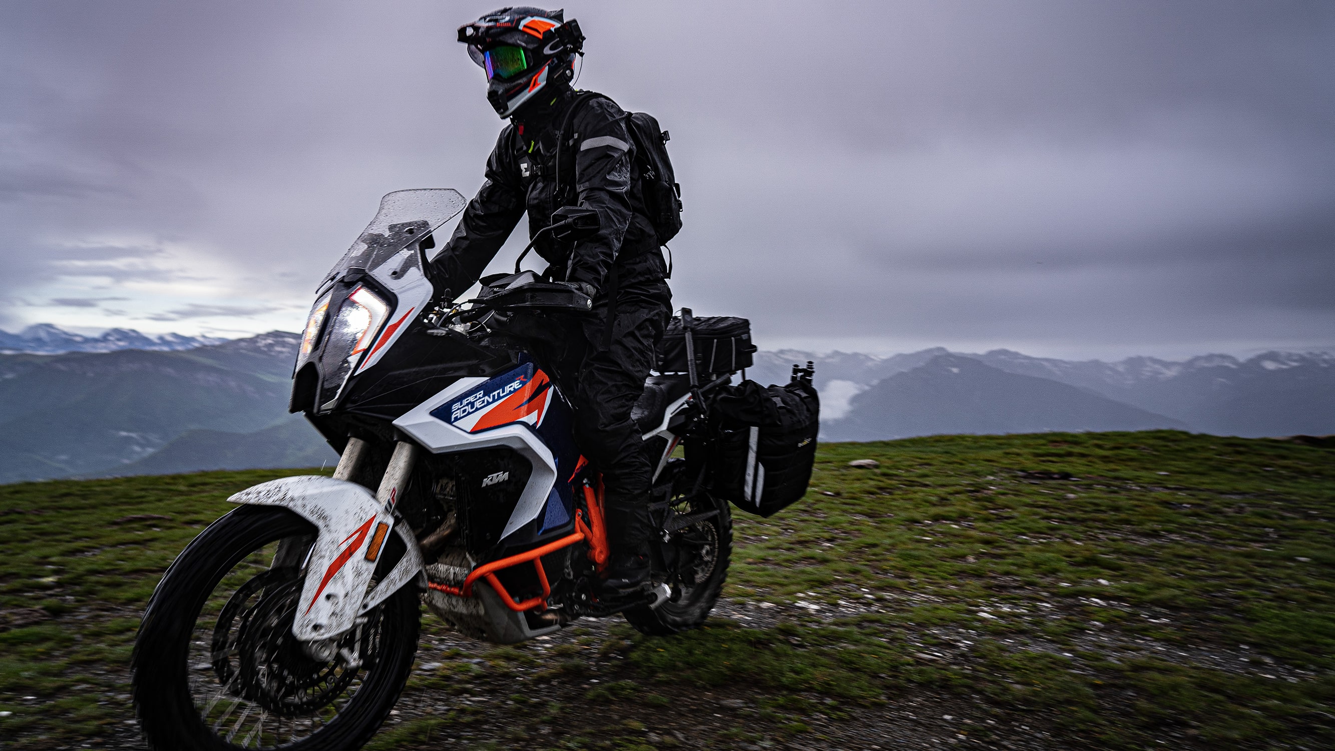 The BUMOT Xtremada soft pannier system for the 2021+ 1290 Super Adventure includes the pannier rack, a 35L left pannier, a 31L right pannier, roll-top liner bags for both sides, pre-installed mounts on the bags, pre-installed locks in the quick release levers, and all hardware required to install the racks to the bike. Overall system width when installed (with the bags fully expanded) is approximately 37.8".
