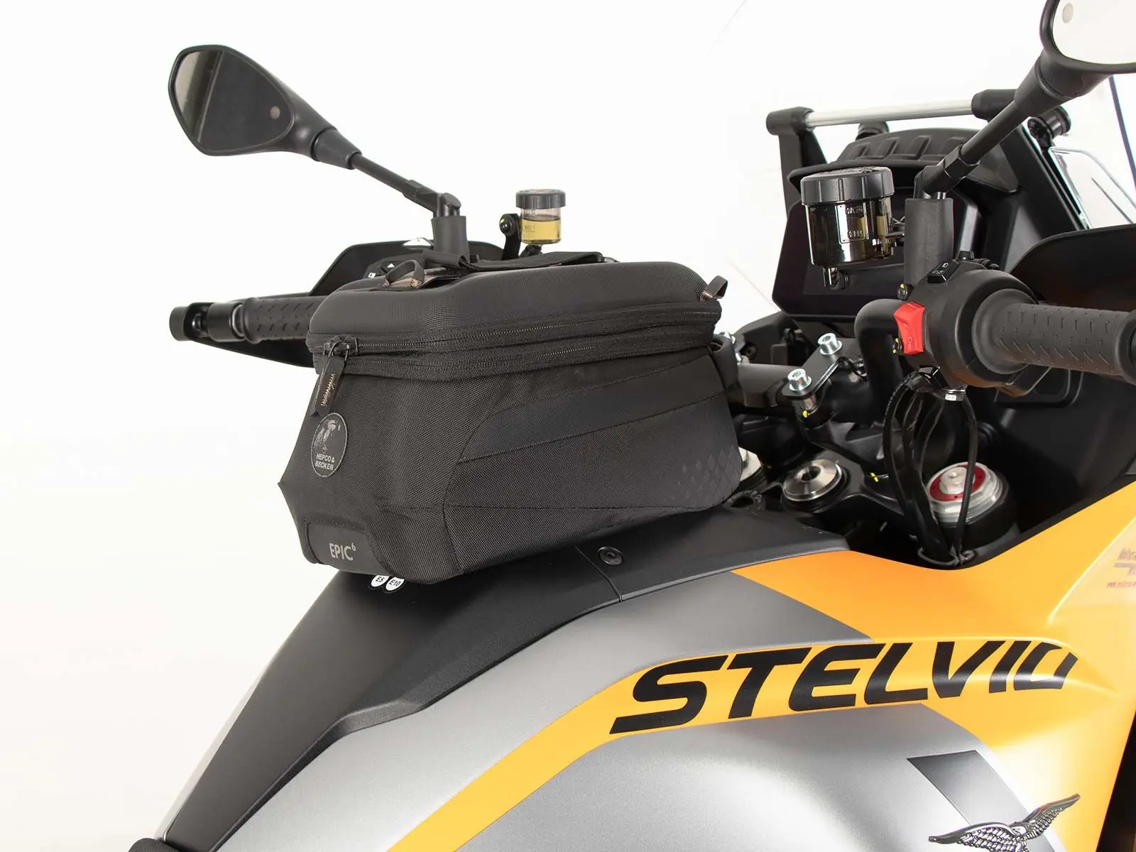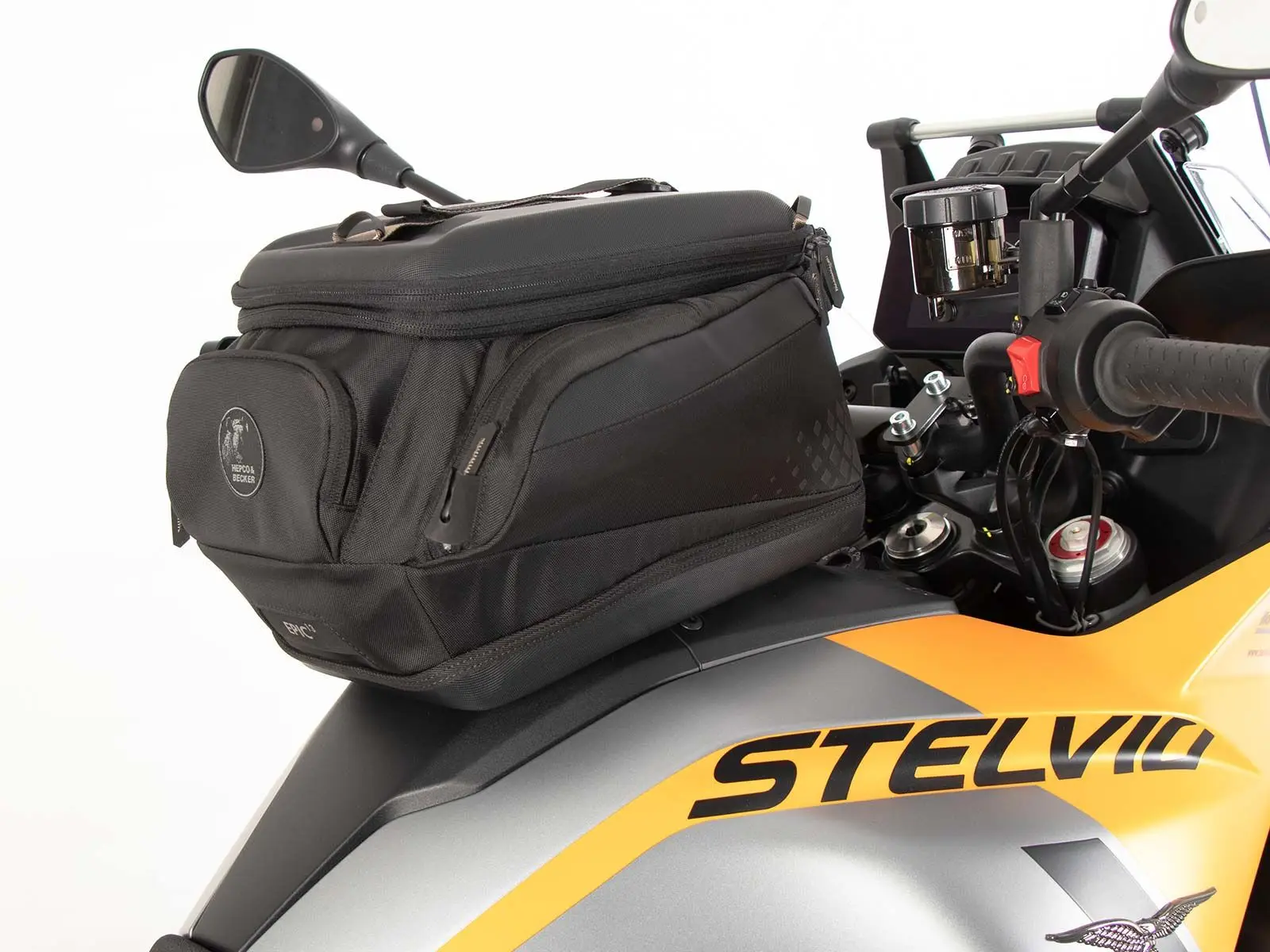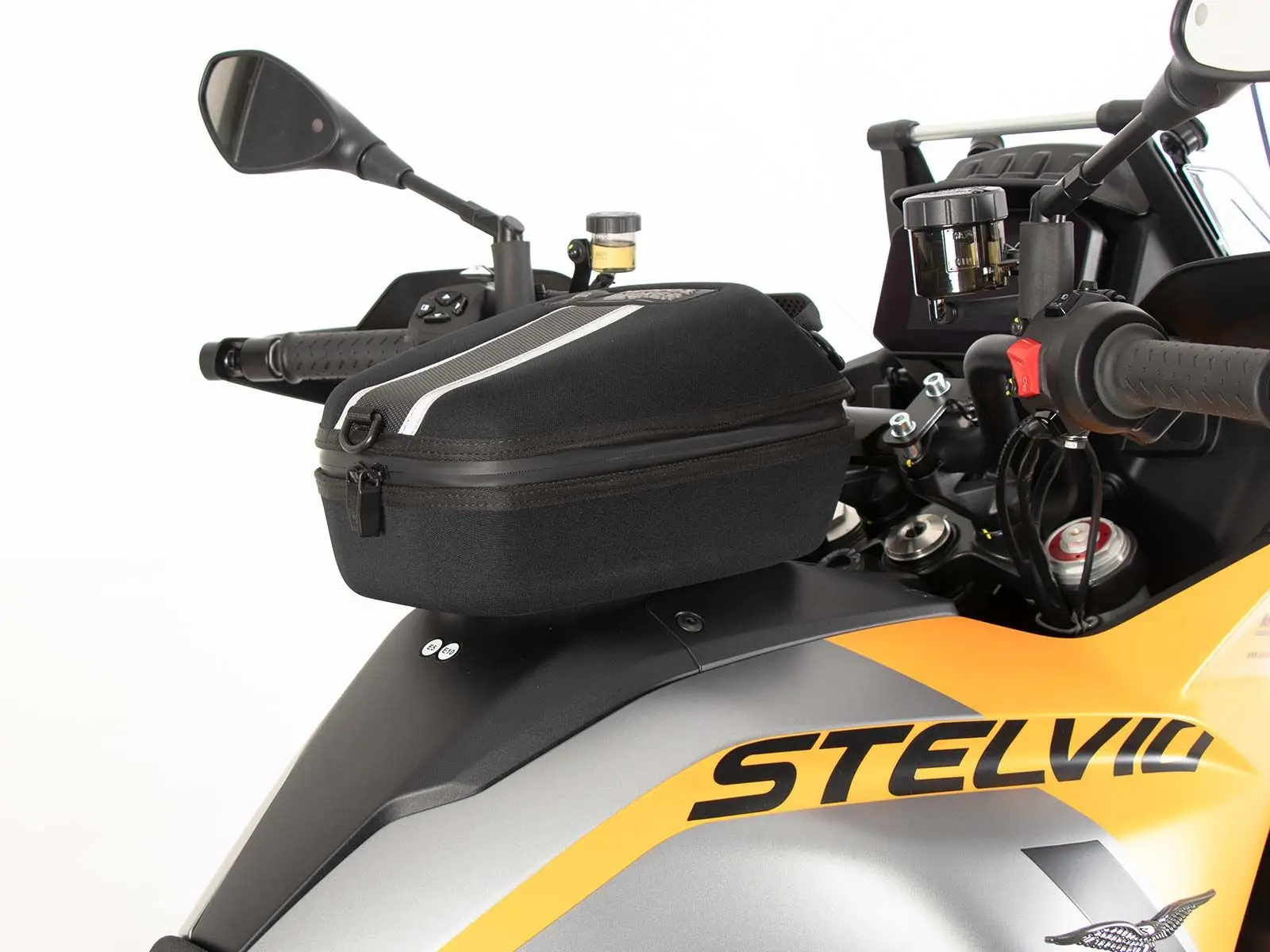The tank ring integrates neatly with your bike’s fuel filler cap using the included hardware and allows quick bag removal with a simple pull strap.