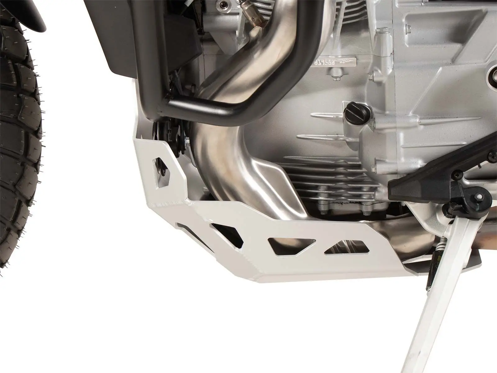 Protect the underside of your adventure bike with a Hepco & Becker Skid Plate. Built from 3–4 mm thick aluminum that’s bent and welded for strength, these skid plates shield the bottom of the engine, headers, radiators, and other vulnerable components from rocks, debris, and hard impacts. Perfect for off-road riding or even hopping curbs, they deliver serious protection where you need it most.