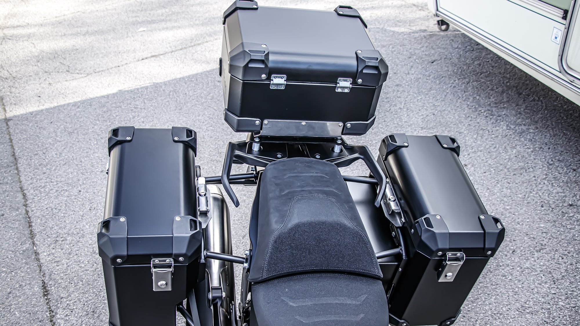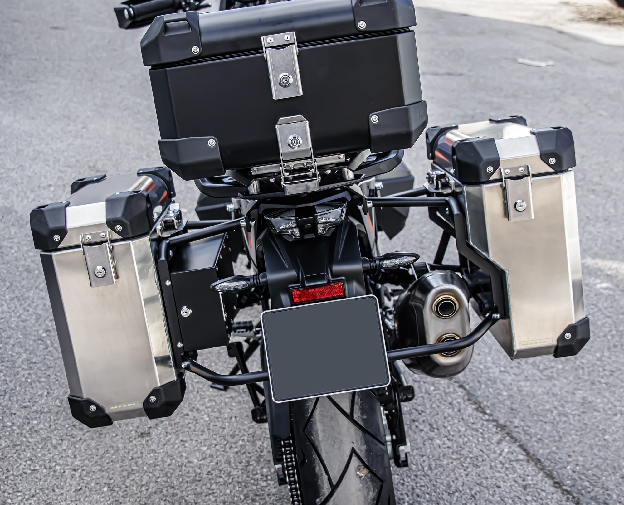 - Beveled corners to visually minimize the size of the cases on the bike